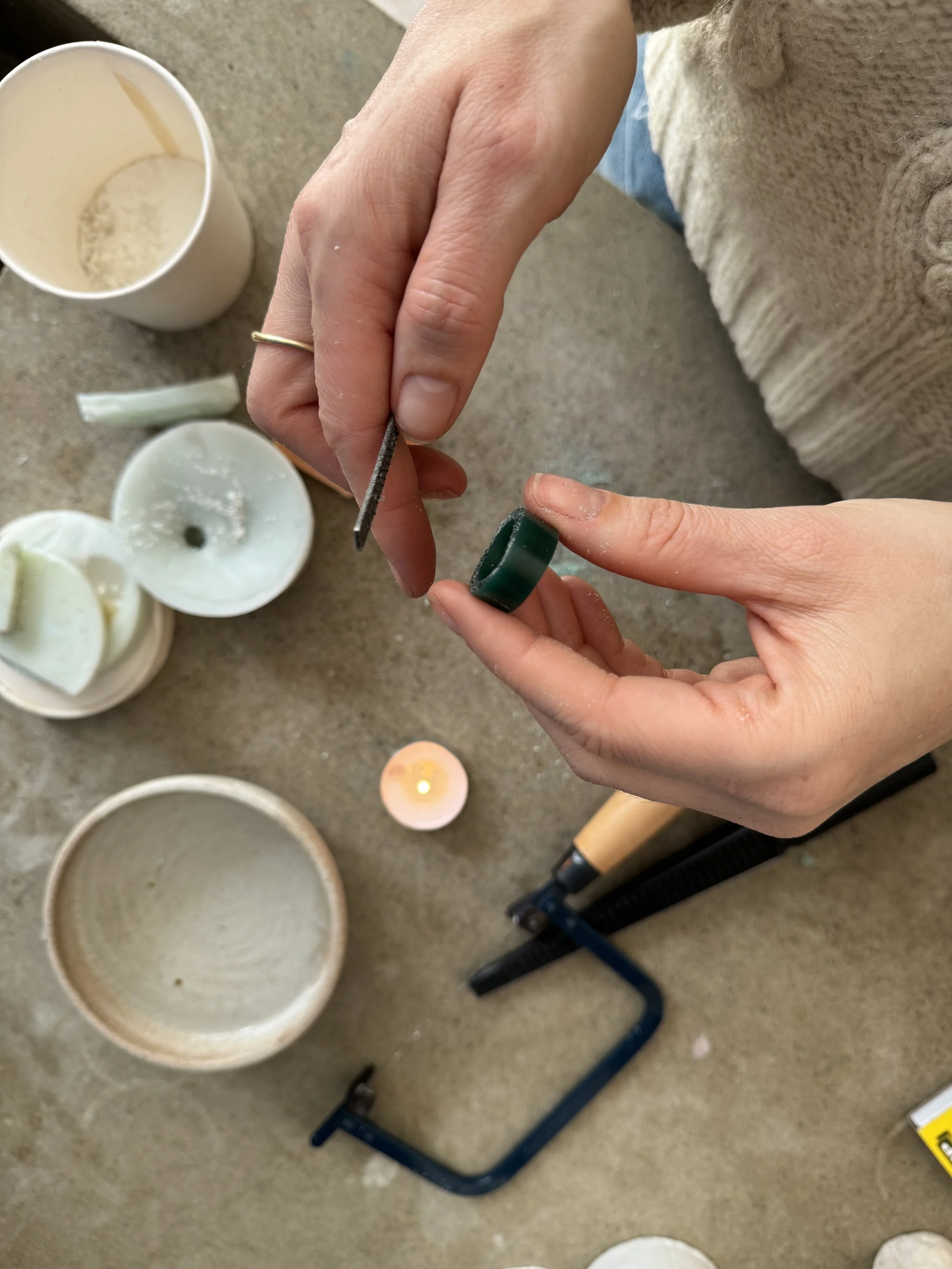 No experience in jewellery making is required I will guide you through making your own ring entirely from wax which will then be sent off for casting in metal.